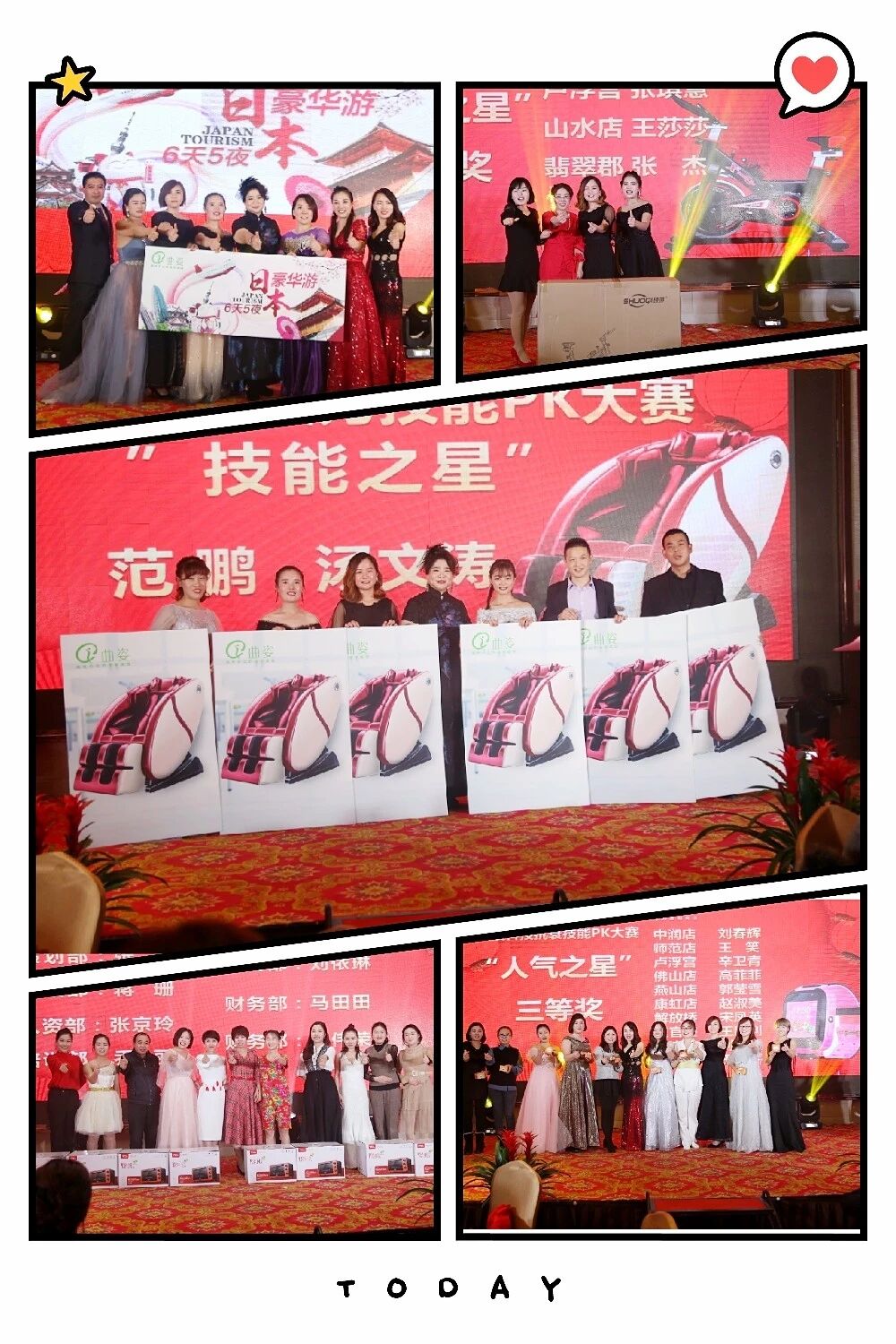 鲜花、掌声、奖杯、丰厚大礼、出国游......在年会现场颁发的奖项达数十个之多,人气之星、技能大赛冠军、总部优秀员工、运营优秀员工、优秀店面、优秀店长及店经理、优秀大区、优秀区总......由于总及高管们亲自为她们颁奖并合影留念。在星光璀璨的舞台上,优秀的家人们尽情享受来自最高荣誉的嘉奖!