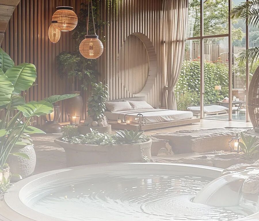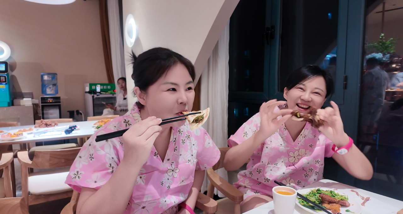 温泉氤氲的雾气中,伙伴们舒展身心
