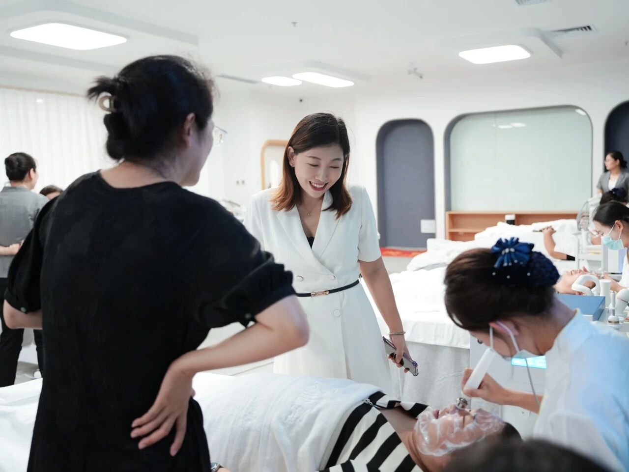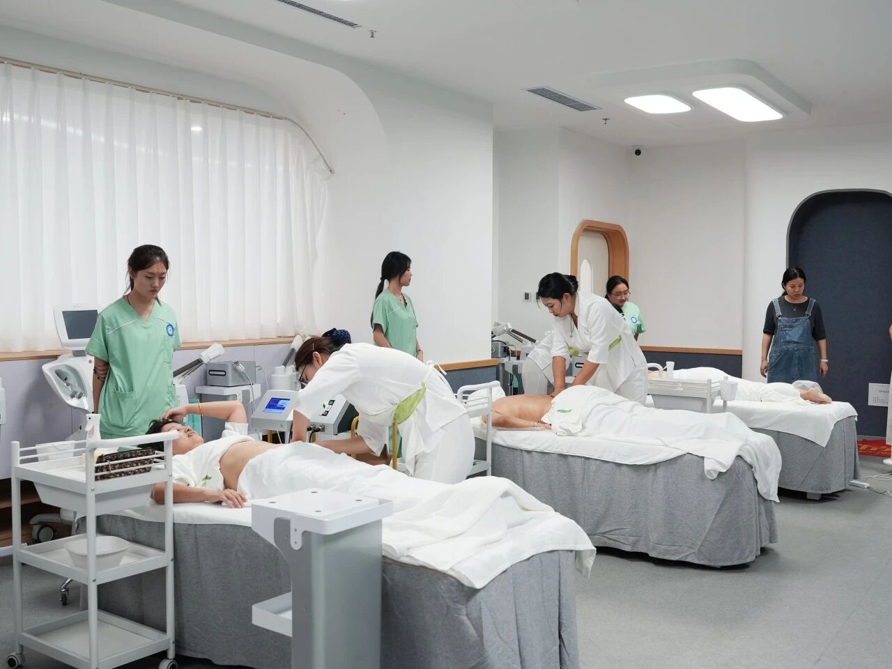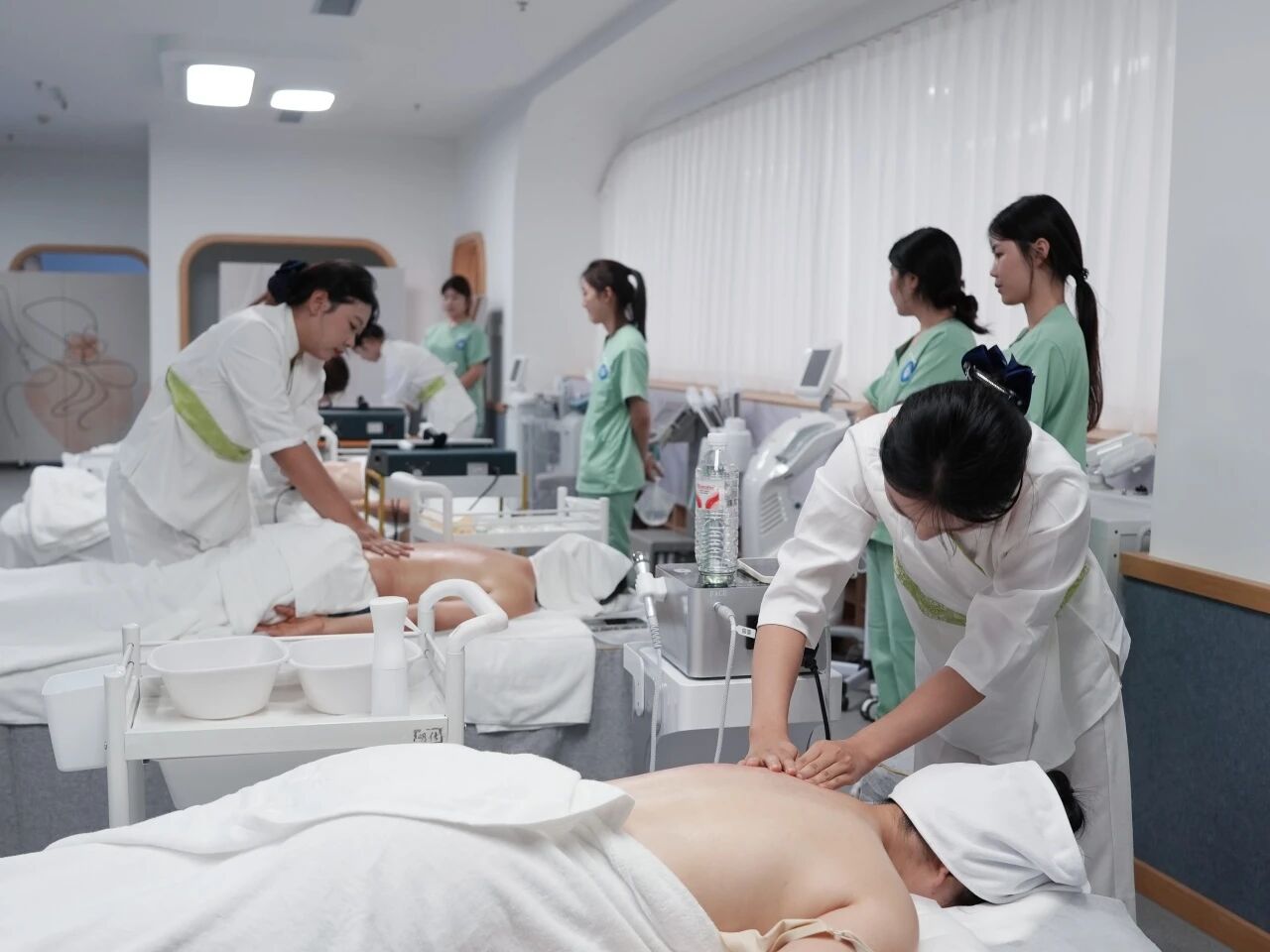 曲姿健康师们手法专业、态度亲和 瘦身、面部、身体 为老师们带来多维护理体验 放松的音乐、舒缓的节奏 现场仿佛成为一片暂时隔绝繁忙的绿洲 老师们闭目养神,眉间渐舒 疲惫在这一刻仿佛被温柔卸下